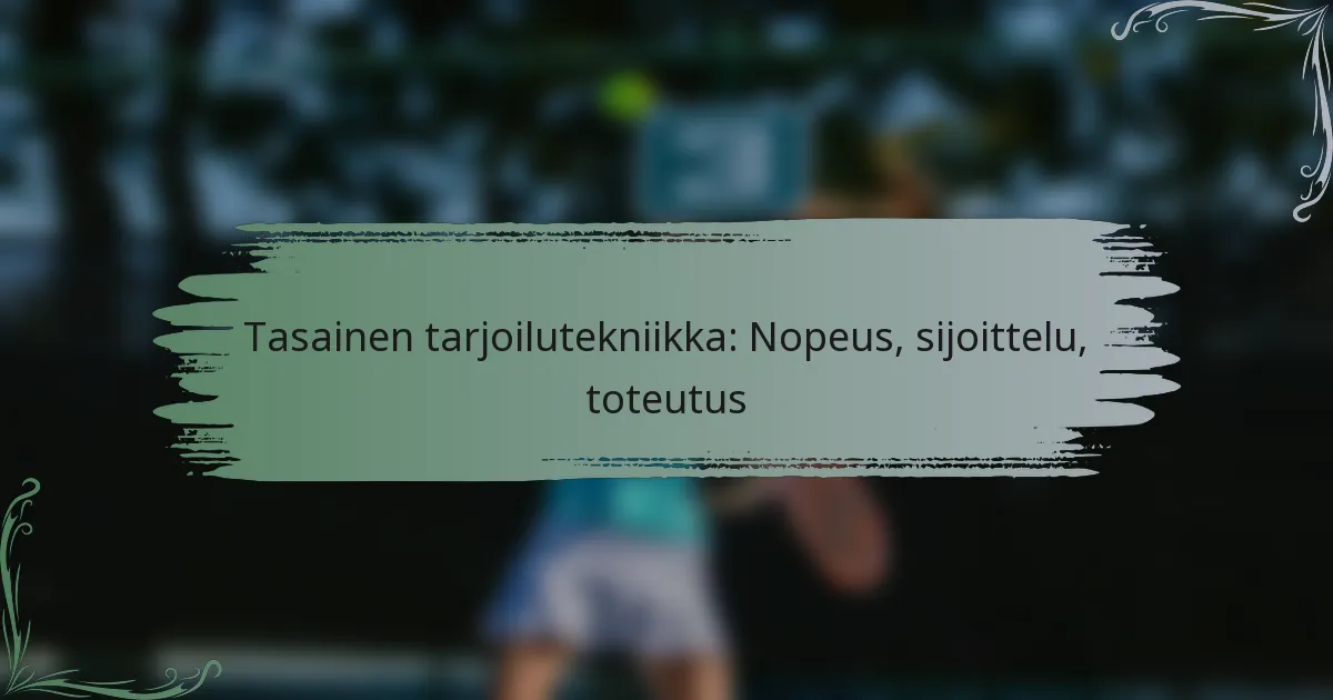 Tasaisen syötön tekniikat keskittyvät nopeuteen ja tarkkuuteen, mikä tekee niistä olennaisia tehokkaassa syötössä tenniksessä. Keskeisiä osia ovat ote, asento, kehon sijoittelu ja lyöntimekaniikka, jotka kaikki vaikuttavat syötön kokonaisvaltaiseen toteutukseen ja tehokkuuteen.