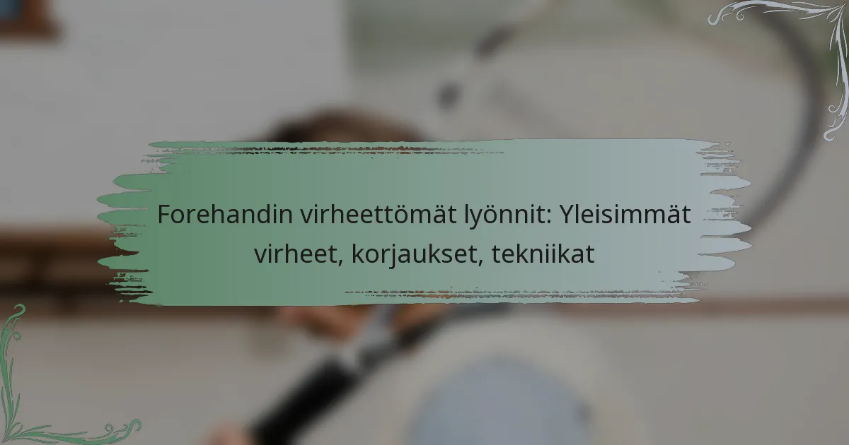 Näiden yleisten virheiden välttäminen on olennaista luotettavan forehandin kehittämisessä. Pelaajien tulisi säännöllisesti arvioida jälkiliikettään ja tehdä tarvittavat säädöt parantaakseen kokonaissuoritustaan kentällä.